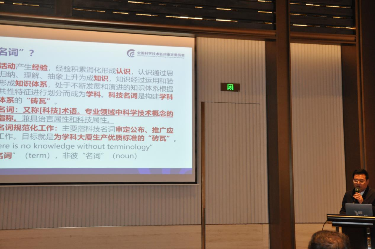 全国科技名词委事务中心审定二处史金鹏处长作了“全国科技名词审定工作总体介绍”的主题报告,从审定工作的概况、科学逻辑、原则与方法等三个方面阐述了科技名词的规范化体系,强调了传达科学内涵,发挥汉语的优势,国家审定公布名词不仅是制定一项国家规范,更是开展一份国家事业、民族事业,集中体现国家意志、攸关学科话语权。