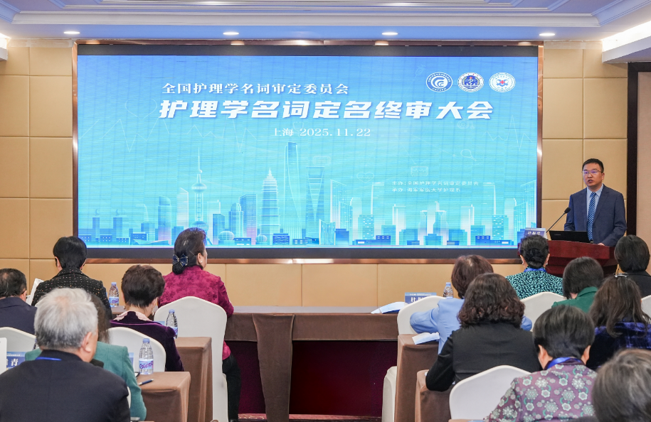 2025年11月22日,全国护理学名词审定委员会定名终审大会在海军军医大学隆重举行。本次会议是继定名一审大会后护理学名词审定工作的关键环节,标志着我国护理学名词体系规范化建设取得里程碑式进展。出席本次会议的领导和专家包括全国科技名词委、海军军医大学、人民卫生出版社、中华护理杂志社相关领导,以及护理学名词委顾问、副主任委员、委员,护理学名词编写委员会副总主编,各分委会主任委员、主编和秘书,共计52人。会议由海军军医大学护理系主任桂莉教授主持。