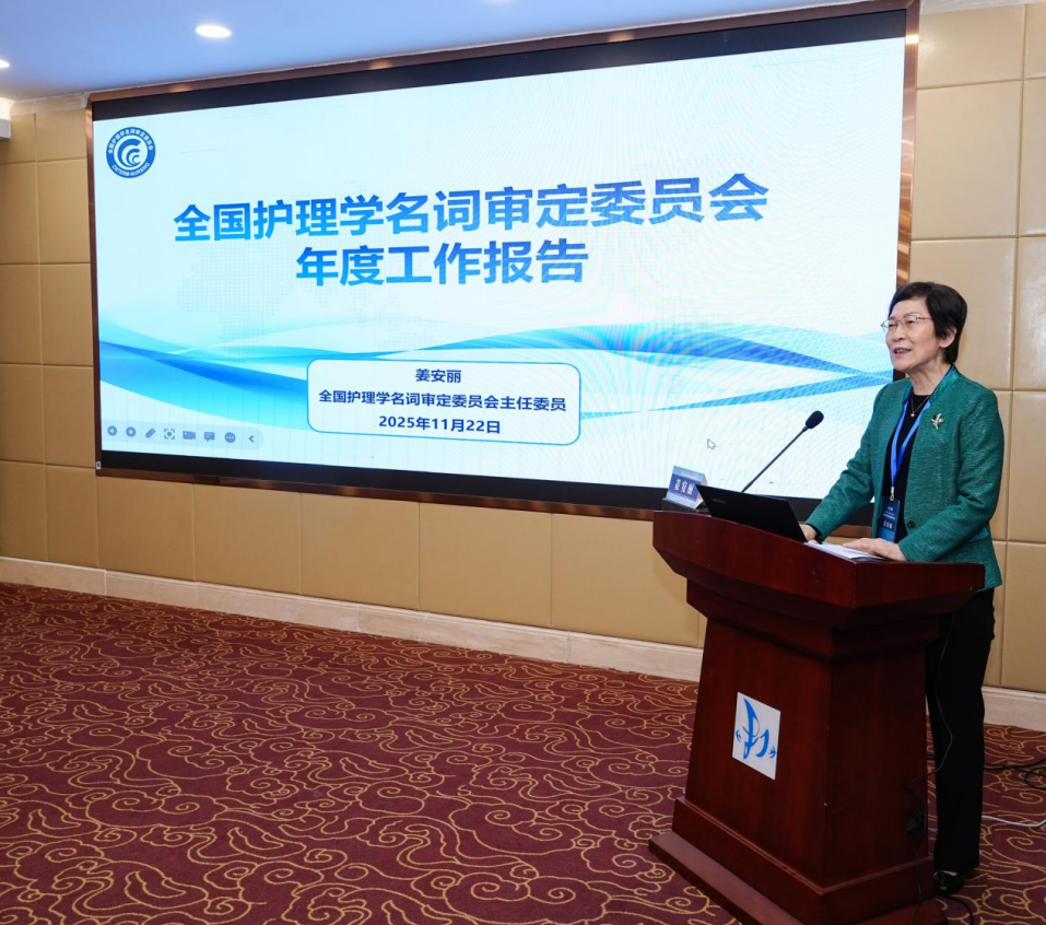 会议听取了护理学名词委主任委员姜安丽教授所做的工作报告。姜主委全面总结了2025年委员会在组织建设、收词定名及初审、二审等方面完成的各项任务与阶段性成果。