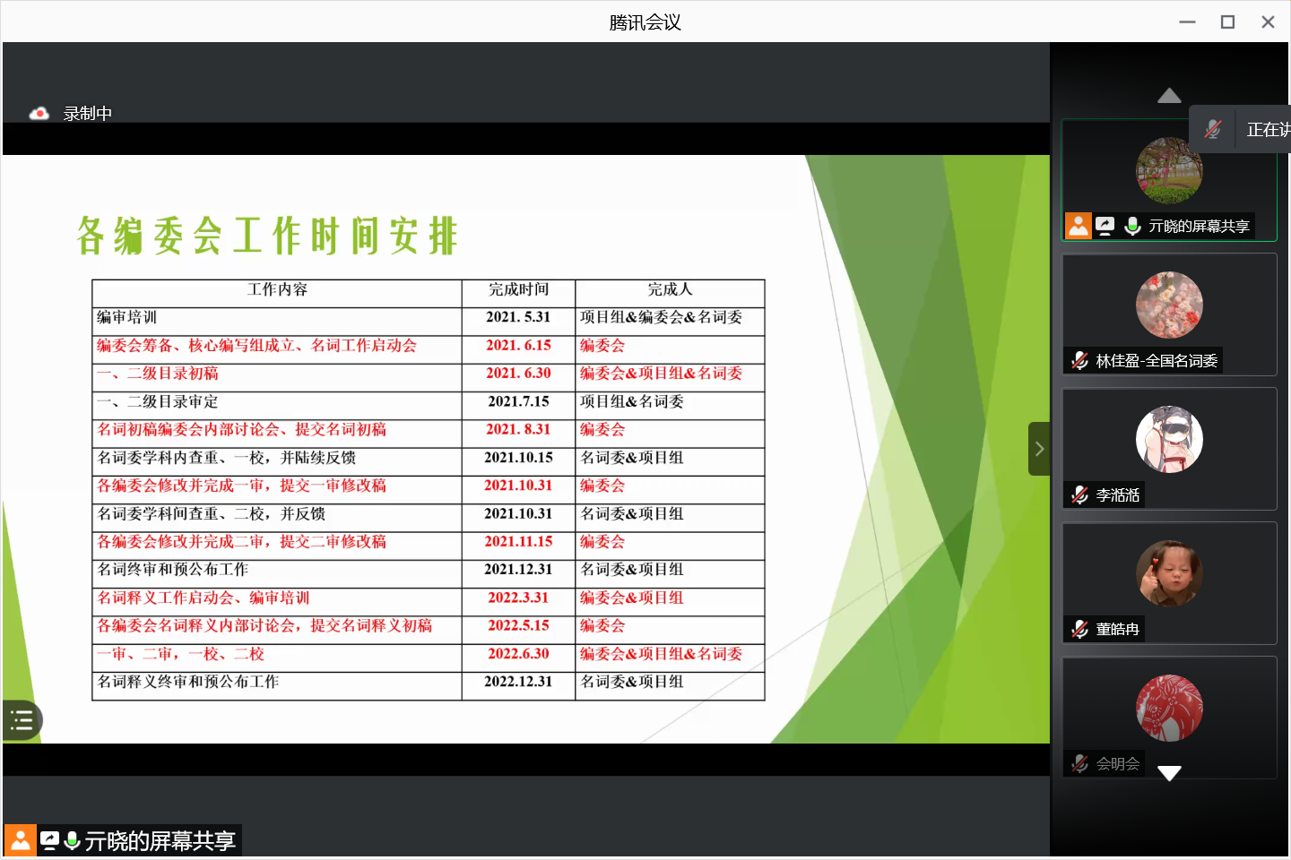 2021年5月26日,公共卫生与预防医学名词编审委员会组织召开线上编写工作培训会。公共卫生与预防医学名词审定委员会副秘书长、中国疾控中心研究生院副院长罗会明,全国科技名词委事务中心副主任张晖,中国疾控中心流行病学办公室亓晓副... 2021年5月26日,公共卫生与预防医学名词编审委员会组织召开线上编写工作培训会。公共卫生与预防医学名词审定委员会副秘书长、中国疾控中心研究生院副院长罗会明,全国科技名词委事务中心副主任张晖,中国疾控中心流行病学办公室亓...