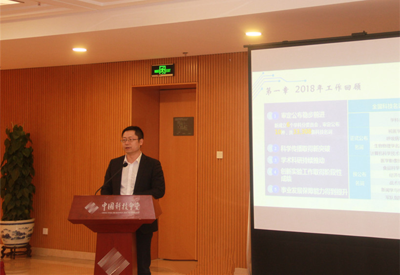 会议审议了全国科技名词委2018年工作总结和2019年工作要点。2018年,全国科技名词委组织82个审定分委员会审定公布10种33308条规范科技名词,圆满完成了国家科技名词规范事业“十三五”规划中期评估工作。《中华科学技术大词典》(10卷本)完成主体工作,“大数据百科全书”项目稳步推进,“术语在线”初步形成品牌效应,科技名词在新闻出版领域的规范使用工作深入推进。