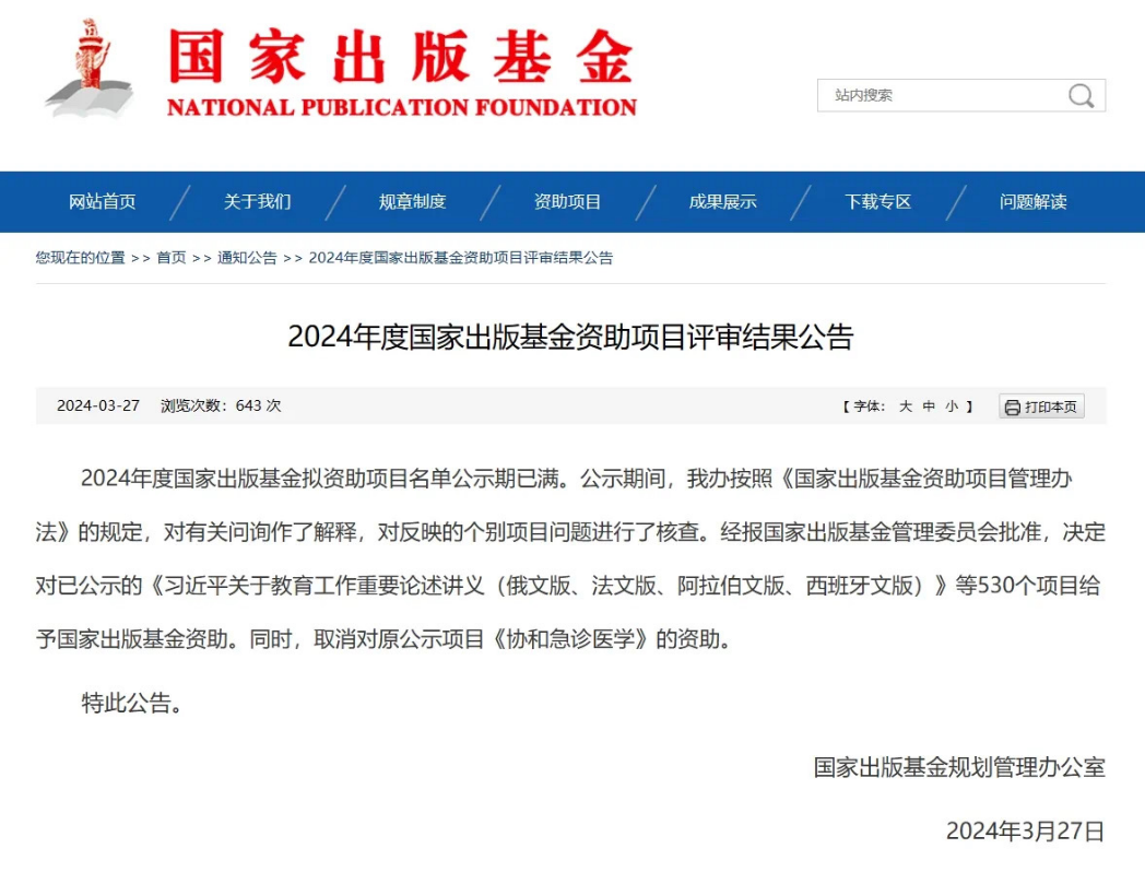 经国家出版基金管理委员会批准,2024年度国家出版基金资助项目名单近日公布,其中包括由全国科学技术名词审定委员会组织编写的两个重点出版项目:“词说学科丛书” 和“中国公共卫生与预防医学知识体系建设丛书”。