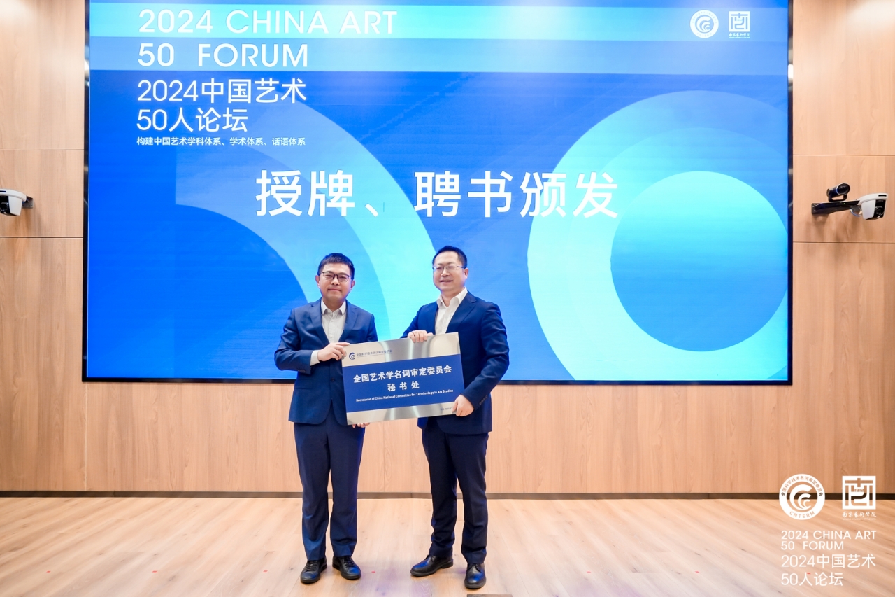 2024年12月19日,“2024中国艺术50人论坛”在南京举行。本次论坛由全国科学技术名词审定委员会、南京艺术学院联合主办,全国艺术名词工作办公室和紫金文创研究院共同承办,中国人民大学、清华大学、北京科技大学、北京师范大学、中国传媒大学、中国音乐学院、中央美术学院、北京电影学院、北京舞蹈学院、东北师范大学、吉林艺术学院、上海戏剧学院、南京大学、东南大学、南京师范大学、浙江大学、中国美术学院、山东艺术学院、湖北美术学院、湖南师范大学、广州美术学院、广西艺术学院、四川音乐学院 、云南大学、云南艺术学院、西藏大学、山东工艺美术学院、内蒙古艺术学院等28所全国各大院校的领导与专家学者,围绕“构建中国艺术学科体系、学术体系、话语体系”主题进行研讨,以艺术名词规范化为手段,努力推动中国艺术学科的高质量、可持续发展。全国艺术学名词审定委员会在论坛期间举办成立仪式,南京艺术学院作为秘书处单位,牵头艺术学理论的名词审定工作。