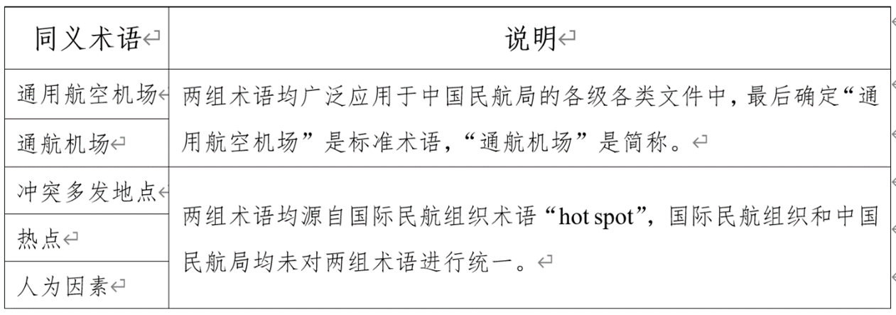 有的词条名称一致,由于适用领域不同(如运输航空和通用航空、客运和货运、不同业务部门),造成所指概念不完全相同。造成此种情况重要原因是发文单位不同,未考虑相关术语在民航中总体适用性。在汇编中,课题组将这些术语归为同一词条,但保留了各自语境下的定义。