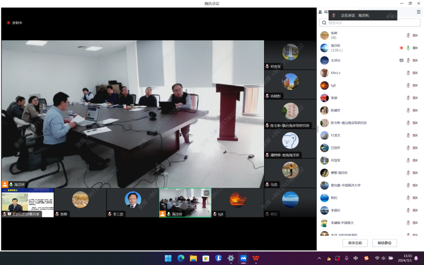 2024年3月1日,第三届全国海洋科技名词审定委员会(以下简称全国海洋名词委)召开海洋科学分委会成立暨编审工作启动会,会议由全国科技名词委和中国科学院海洋研究所共同主办,采用线上与线下同步进行的方式开展。全国海洋名词委常务副主任、中国海洋大学崇本学院院长高会旺,中国科学院海洋研究所所长、全国海洋名词委海洋科学审定分委会主任王凡,全国科技名词委事务中心副主任张晖、审定业务一处处长王海,以及来自全国21家海洋科学领域机构的50余位专家出席会议。会议由全国海洋名词委海洋科学审定和编写分委会秘书胡石建研究员主持。