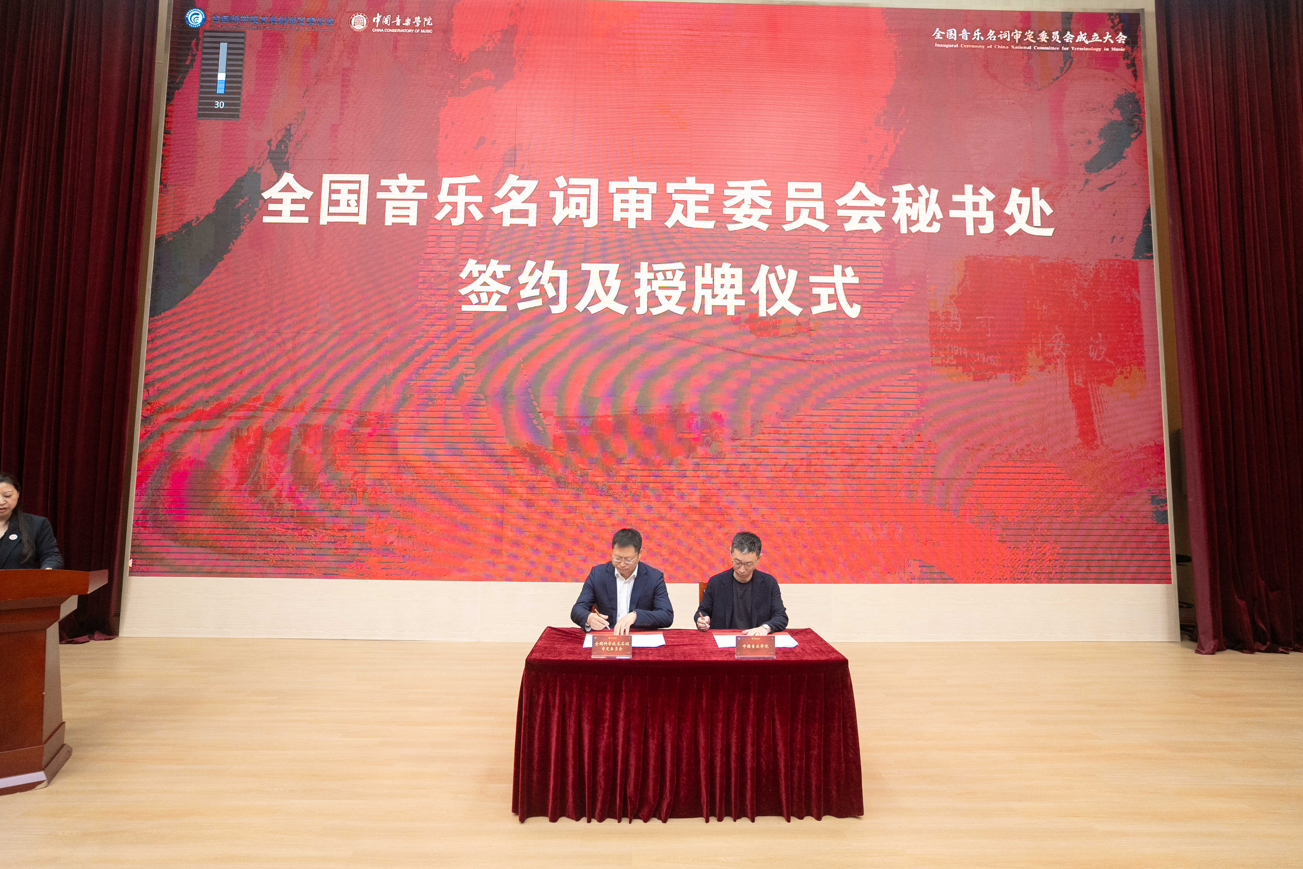 会议举行了全国音乐名词审定委员会秘书处签约与授牌仪式, 裴亚军主任和李心草院长代表双方签约,音乐名词审定工作正式启动。