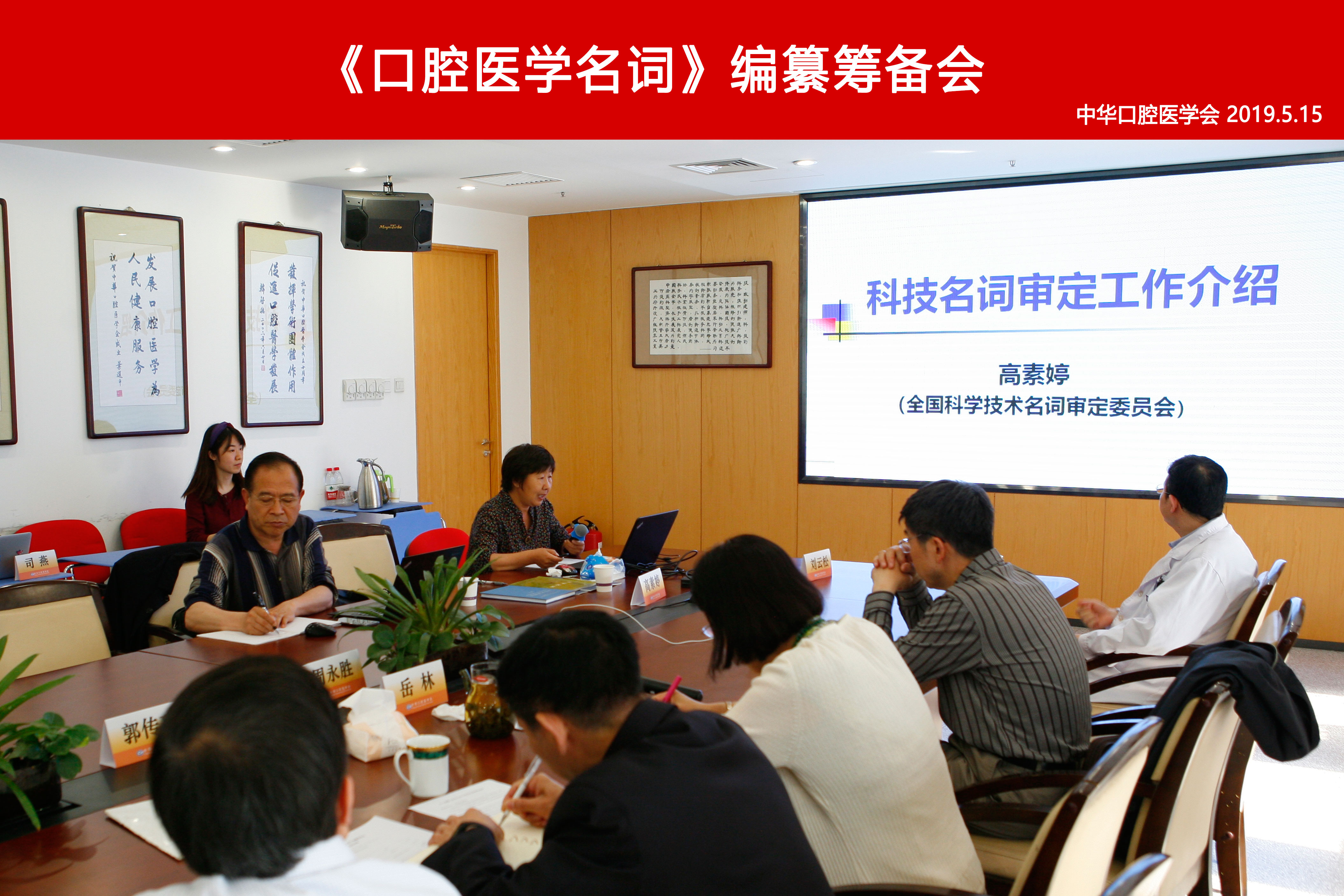 2019年5月15日下午,《口腔医学名词》审定编写筹备会在中华口腔医学会召开。出席会议的有中华口腔医学会会长俞光岩、秘书长岳林、秘书侯敏及23位专家,全国科学技术名词审定委员会高素婷,中华医学会医学名词审定委员会秘书长张玉森。...2019年5月15日下午,《口腔医学名词》审定编写筹备会在中华口腔医学会召开。出席会议的有中华口腔医学会会长俞光岩、秘书长岳林、秘书侯敏及23位专家,全国科学技术名词审定委员会高素婷,中华医学会医学名词审定委员会秘书长张玉森。...