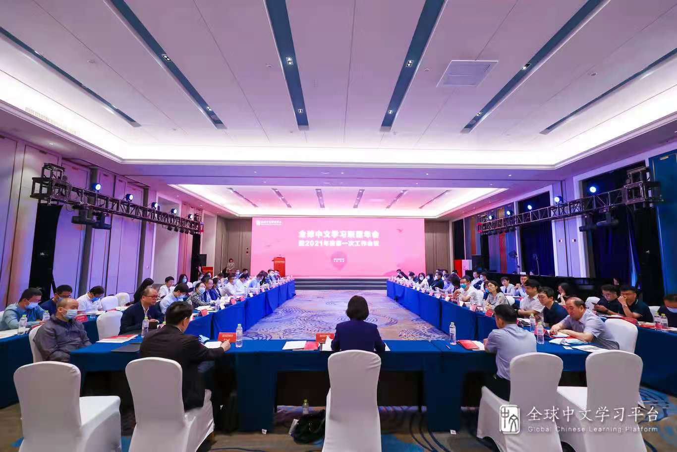 为推进联盟年度工作,交流全球中文学习平台建设工作进展及发展规划,促进联盟成员间交流与合作,全球中文学习联盟年会暨2021年度第一次工作会议于6月10日在全球中文学习平台总部基地(青岛)召开。教育部语言文字信息管理司司长田立新,青岛市教育局总督学尹明琴,青岛西海岸新区政府党组成员姜珲,联盟理事长单位、人民教育出版社副总编辑郑旺全,联盟秘书长单位、科大讯飞教育事业群副总裁汪张龙,以及联盟成员单位代表、专家委员会成员、联盟研究专项课题负责人、科大讯飞的教育行业专家们等共同出席了会议。事务中心副主任代晓明、宣传推广处副处长杜振雷受邀参加会议。