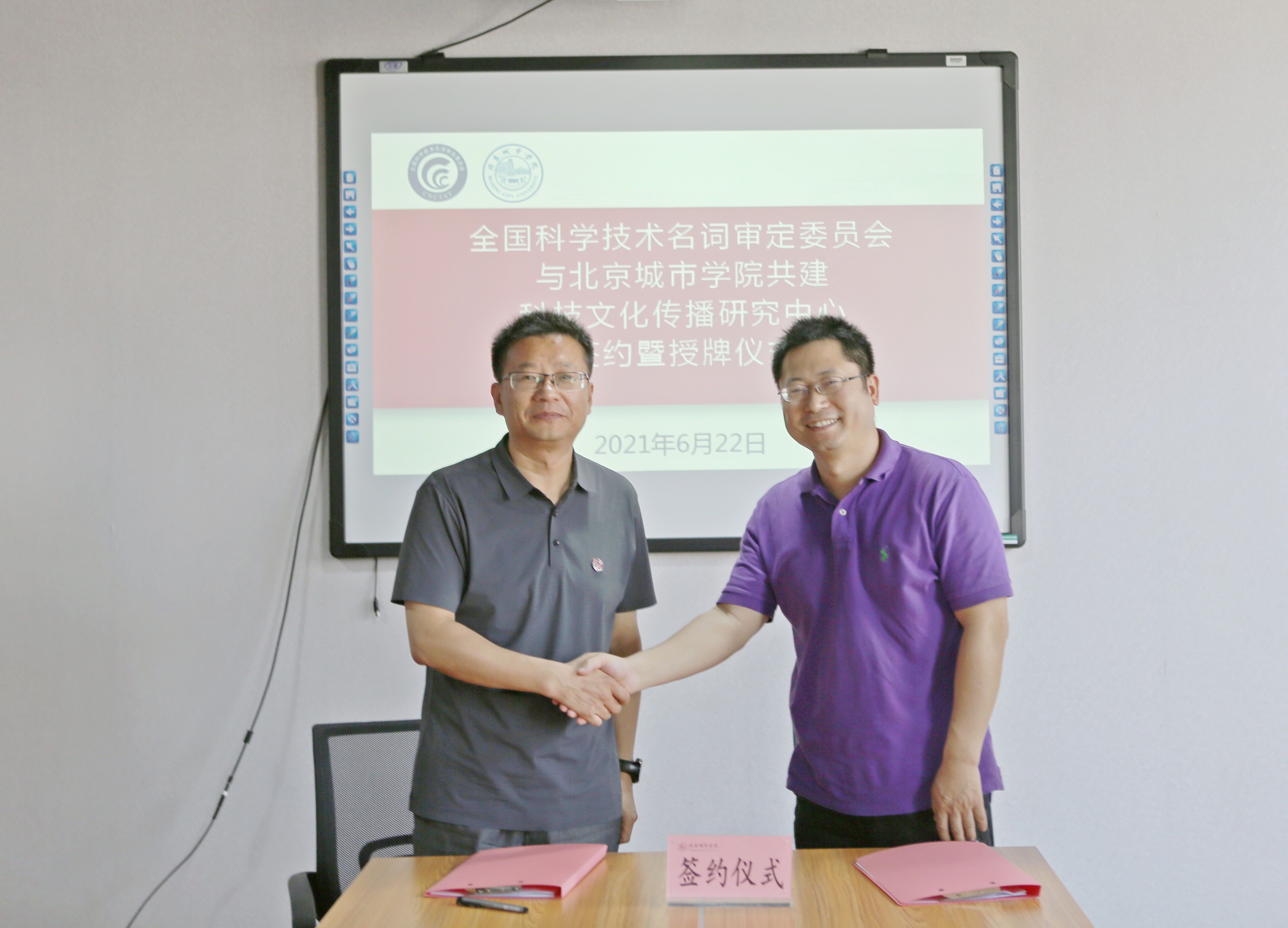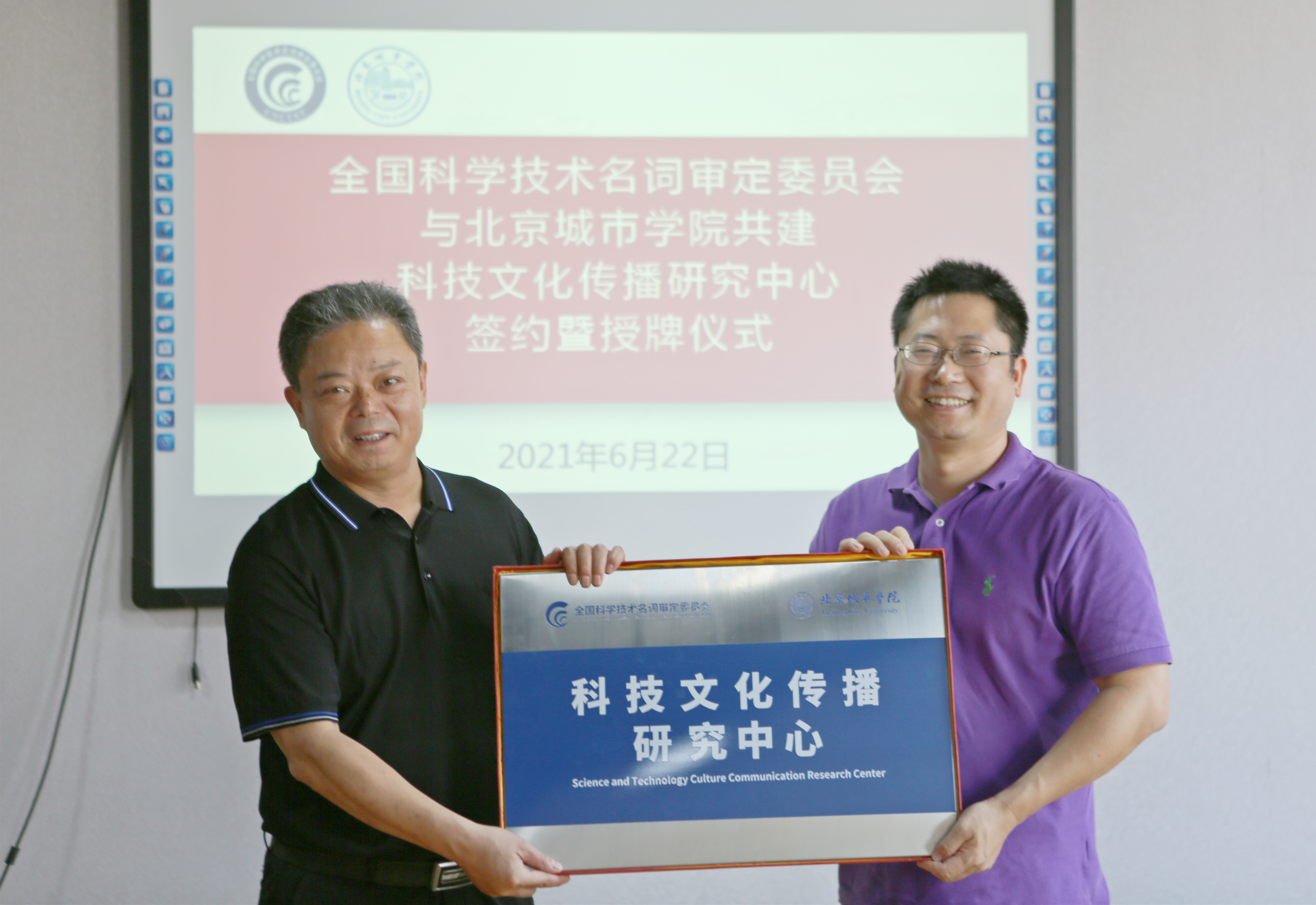 全国科学技术名词审定委员会与北京城市学院共建“科技文化传播研究中心”签约暨授牌仪式,于2021年6月22日上午,在北京城市学院航天城校区举行。