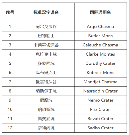 民政部接受全国科技名词委建议公布《第一批冥卫一地名标准汉字译名》
