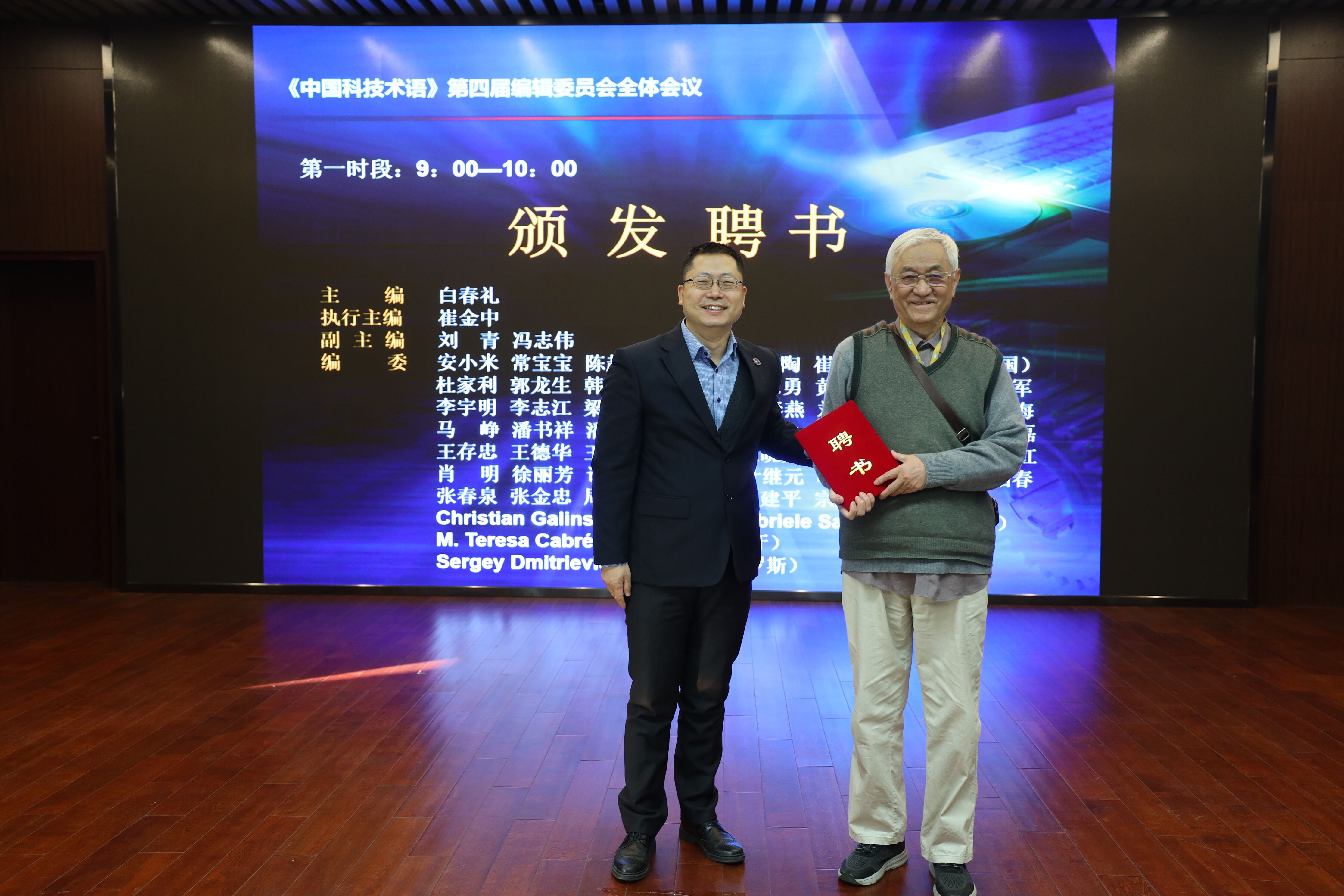 裴亚军代表全国科技名词委致辞,并向新一届编委会成员颁发了聘书。他指出:《中国科技术语》是我国术语学领域的标志性刊物,经过30余年的艰苦探索和努力,期刊出版质量和学术影响力稳步提升,为交流学术成果、培养理论研究人才、培育术语学科、宣传推广科技名词规范化工作发挥了重要作用。裴亚军强调学术期刊更要遵循新时代发展规律,探寻转型发展之路,发挥每一位编委在领域内的辐射和引领作用,走专家办刊的道路,才能凝聚我国乃至世界术语学研究的力量,促进中国特色术语学科的蓬勃发展。