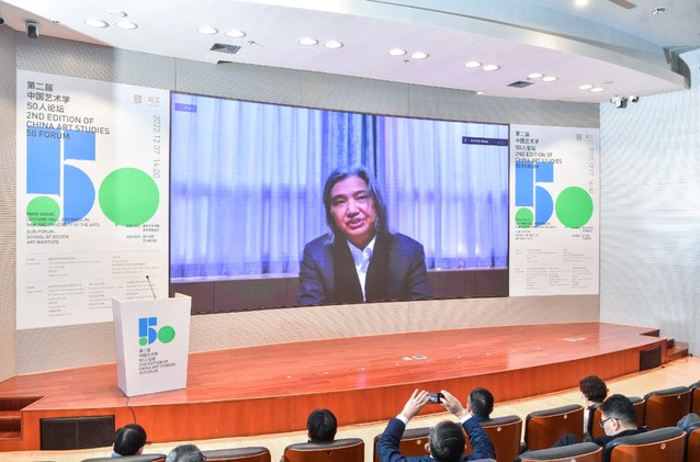 “第二届中国艺术学50人论坛”开幕式上,江苏省委教育工委书记、教育厅厅长葛道凯,江苏省委宣传部副部长徐宁,中国美术家协会名誉主席、中央文史研究馆副馆长冯远,中国文联副主席、书记处书记、中央音乐学院院长俞峰,中国美术家协会主席、中央美术学院院长范迪安,全国政协常委、中国美术馆馆长吴为山,清华大学党委常委、副校长彭刚出席论坛(线上参会)并发表讲话及致辞。校党委书记俞锋致欢迎辞,校长张凌浩主持开幕式。